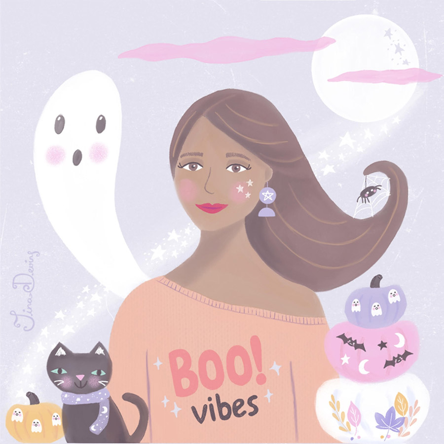 This time we have a spooky but cute design for Hallowe’en! ‘Boo Vibes‘ brings you black cats and pretty pumpkins!