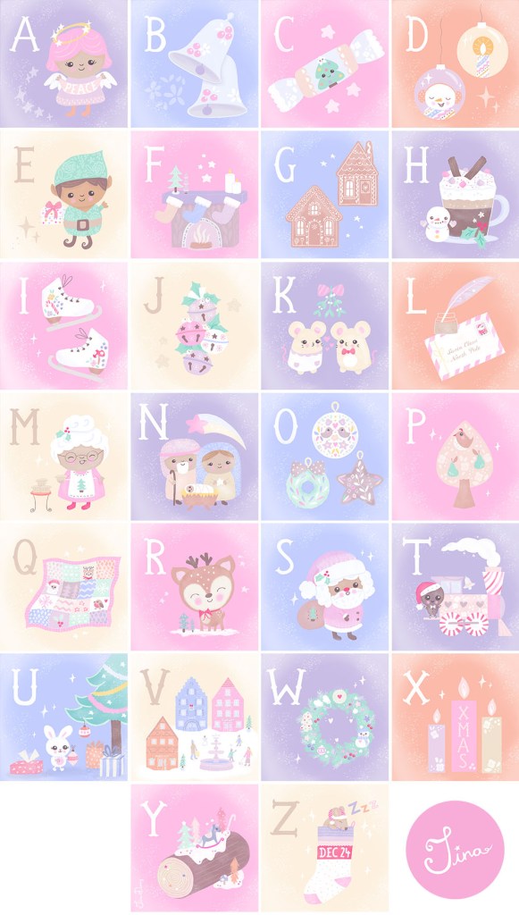 This Christmas season, instead of doing an advent challenge, I created a Christmas alphabet instead (it’s almost the same, just an extra illustration!).